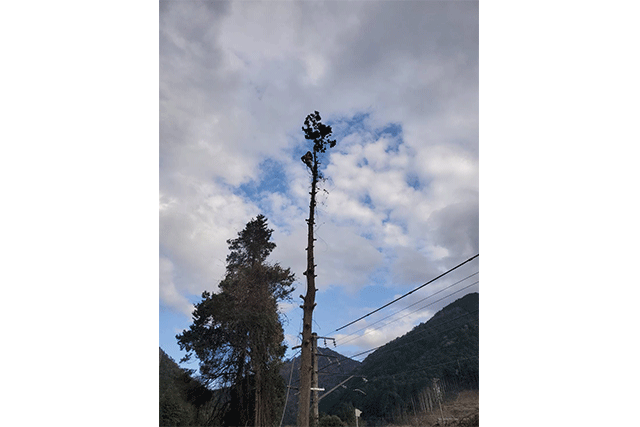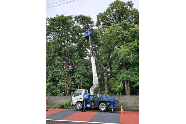 有限会社岩田造園林業は主に線路沿いでの特殊伐採作業・除草作業・伐採作業を手がけております。電車や車の往来がある現場でも、クレーンや高所作業車を使って適切な伐採作業を行ないます。
